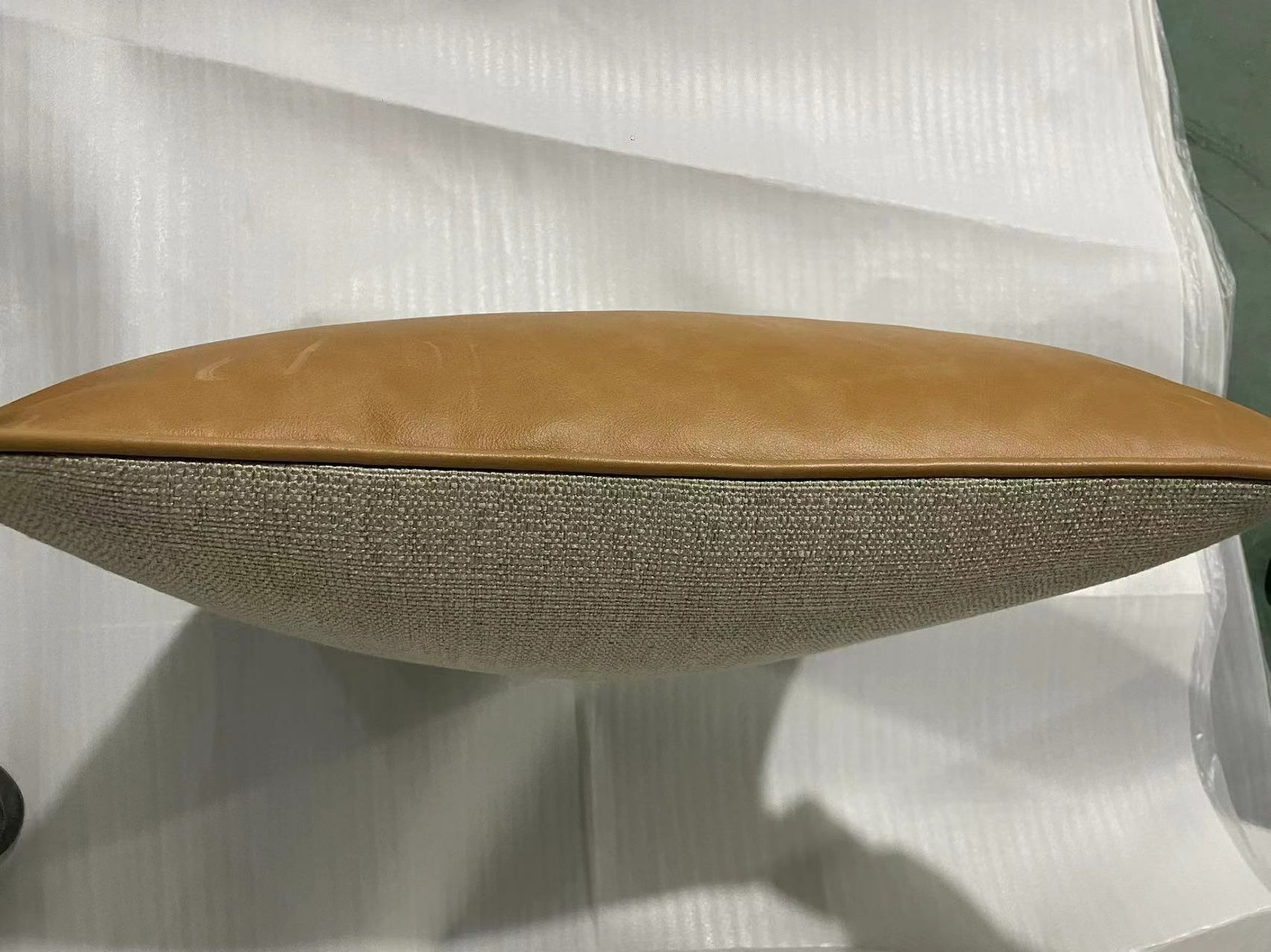 Elevate your space with this elegant Leather Accent Pillow, featuring a luxurious leather front and a textured fabric back for a sophisticated touch.