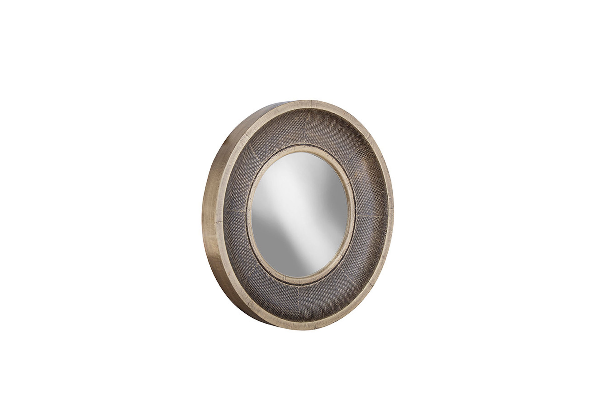 The Lux Porthole Mirror features a unique round design with an elegant textured frame, adding a touch of nautical-inspired sophistication to any space.