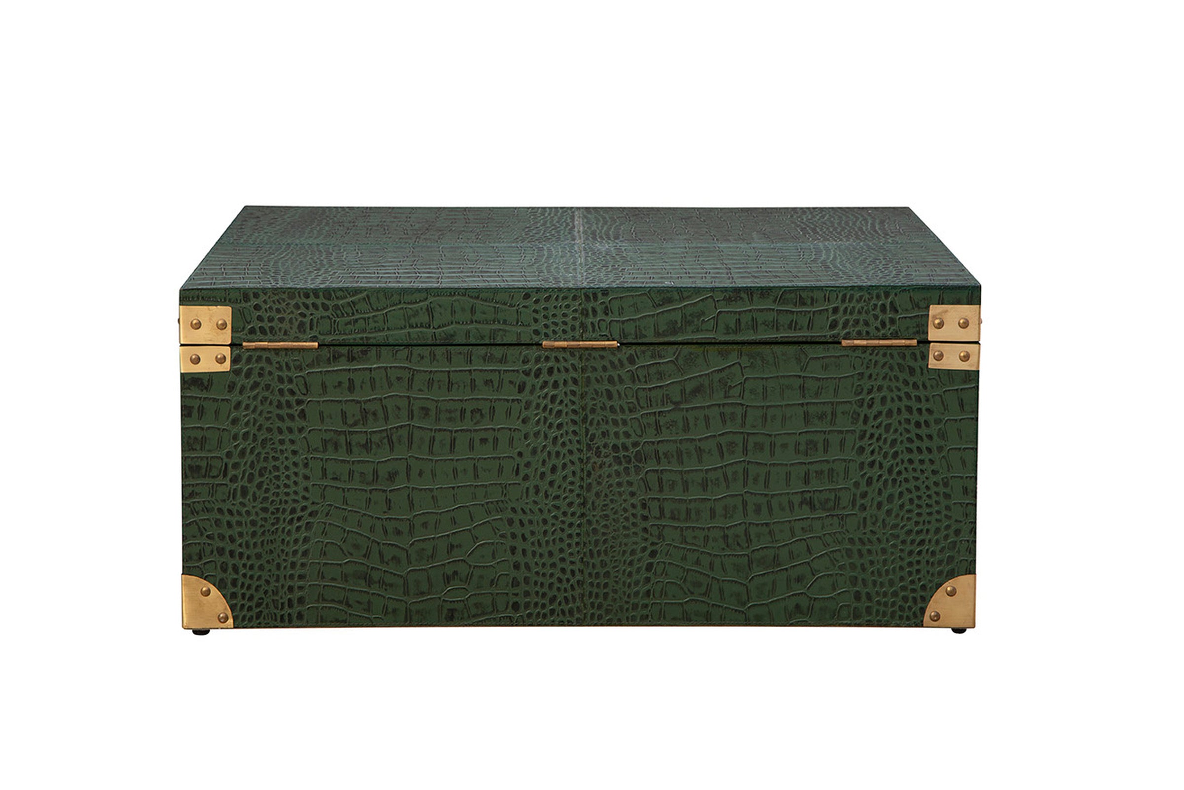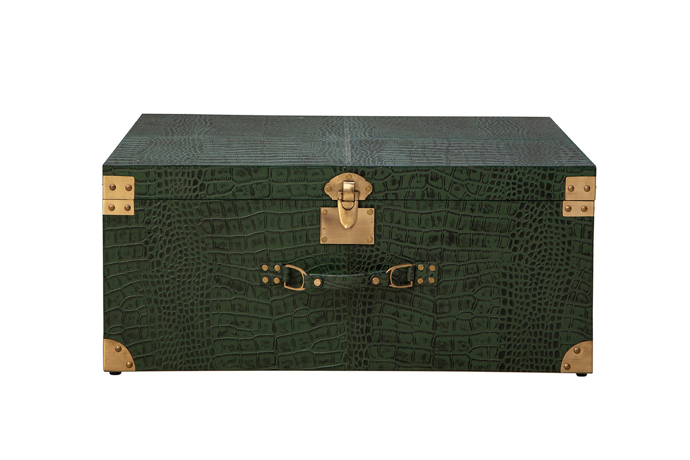 Marvin's Large Trunk features a sophisticated green crocodile pattern with elegant brass accents, perfect for stylish storage and décor.