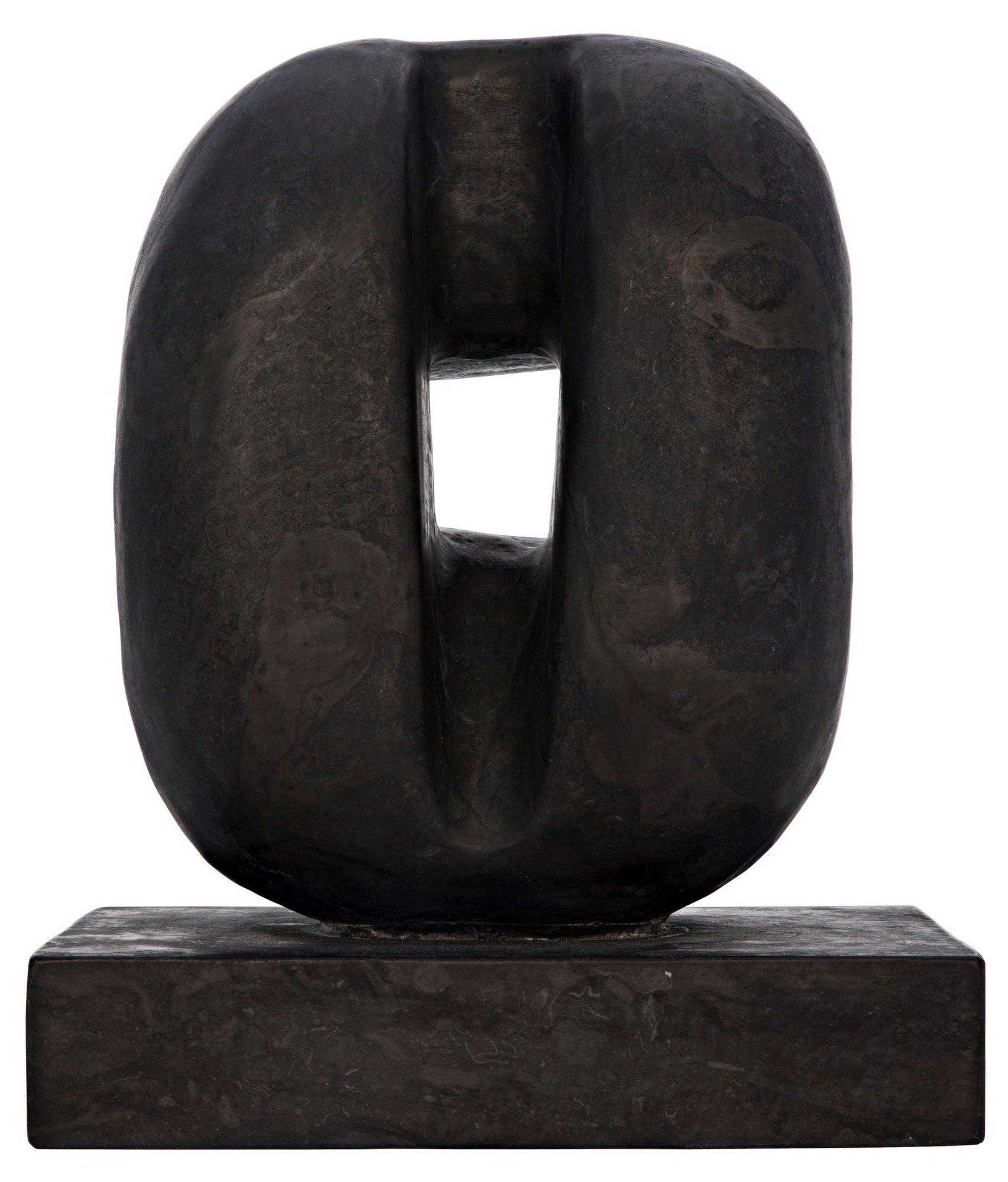 Solid marble is carved into intriguing curves in this compelling sculpture that rests on a marble base.