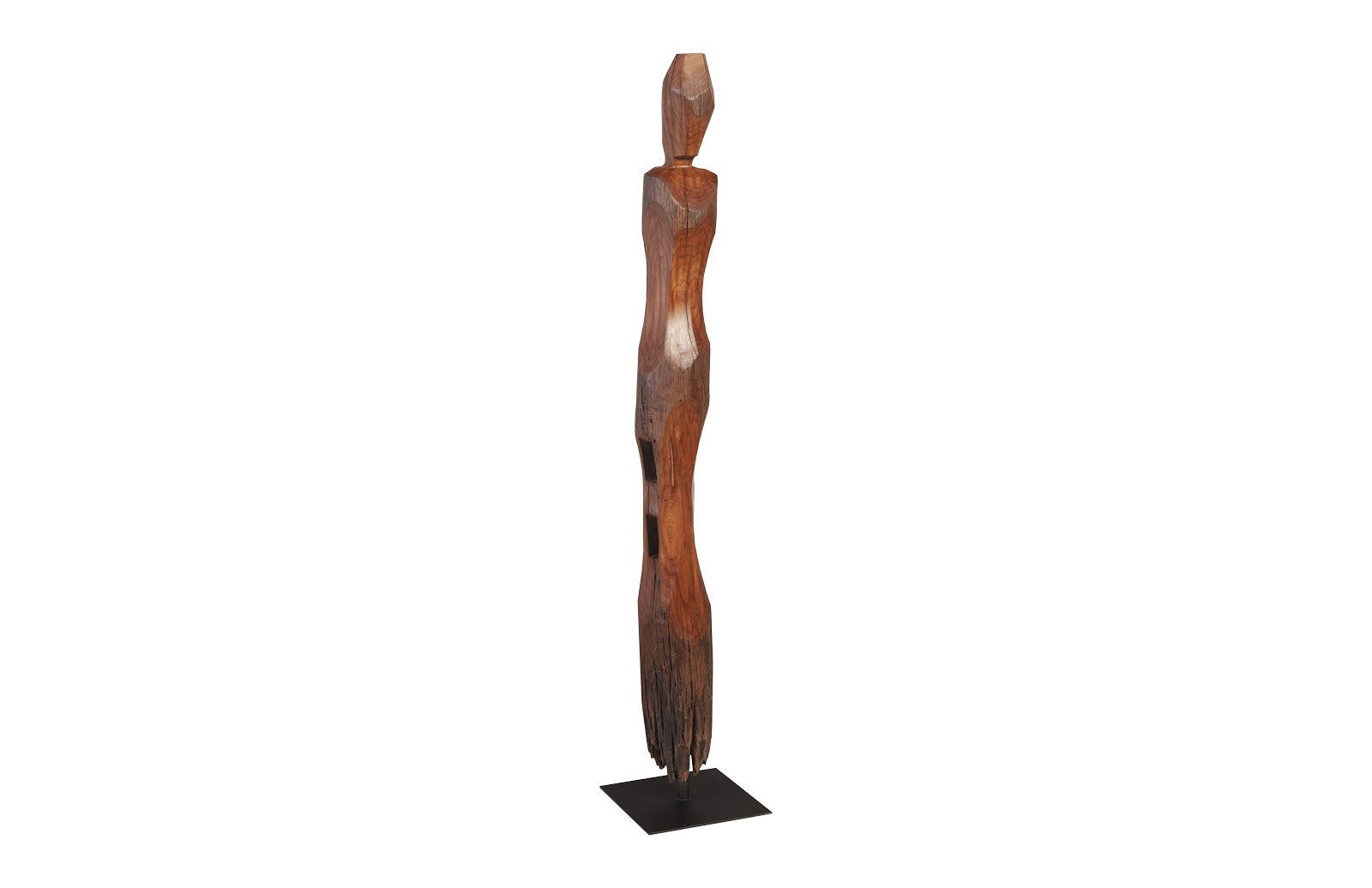 Abstract art is a wonderful vehicle for communicating the human condition. The Old Pole Man Statue is a statue crafted from natural wood that illustrates the undeniable connection between man and Nature. Wood is a living, breathing organism just like we are; this is proven in how the natural growth patterns of the piece simulate the subtle, unique curvature present in the human body. The way in which the human form seems to be growing from the black iron base as if it were a tree is a delightful touch and is sure to make this piece a strong conversation starter within your space.