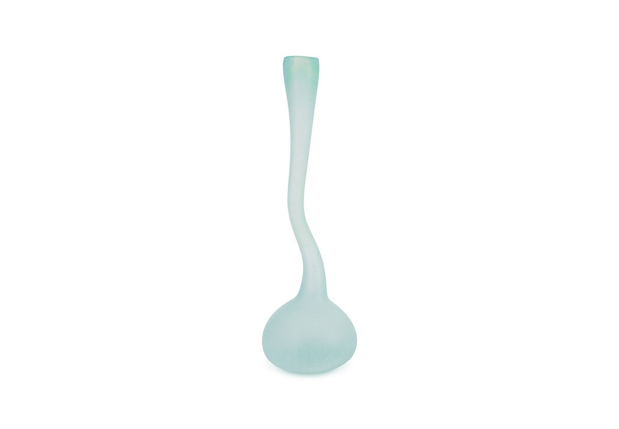 This Frosted Corkscrew Vase is truly stunning. Its beautiful frosted turquoise creates a glow when placed in direct sunlight. Blown from glass this vase is delicate and is a fabulous addition to any space.