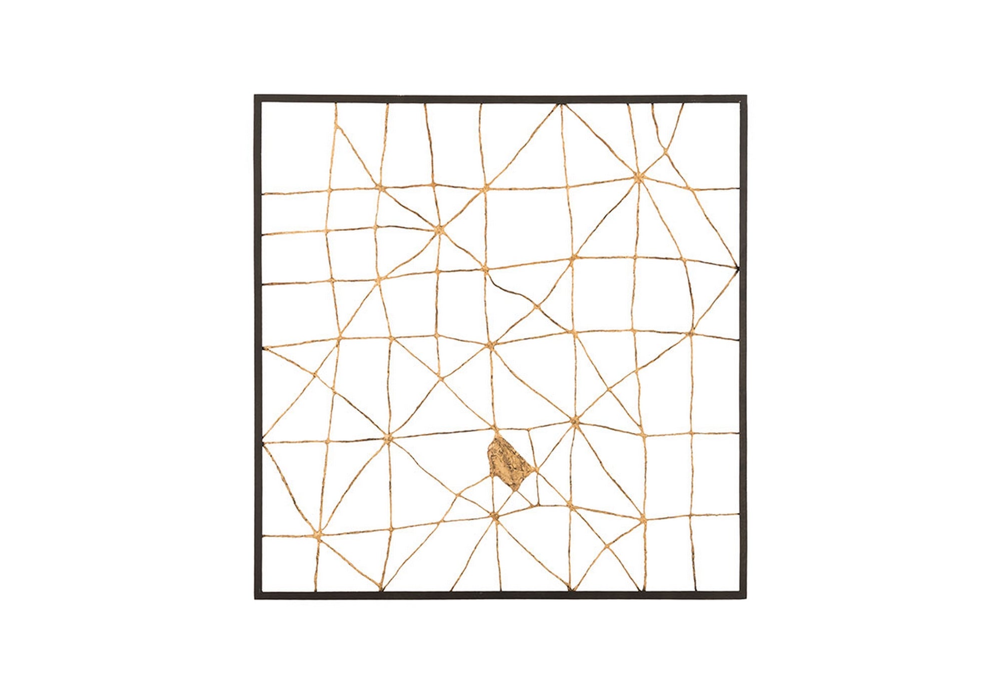 Opposites attract in the composition that we call the Mesh Wall Art. This results from the juxtaposition of dark and light finishes on the metal wall sculpture and the mix of smooth dark surfaces and textural light surfaces with their heavy dose of patina. It's large enough to be a focal point over a fireplace or buffet. The wall piece is made of iron but it's not overly heavy thanks to the lightness of the elements our artisans brought together. The abstract qualities intermingled with the contemporary feel of this piece exemplifies the Phillips Collection ethos of modern organic.