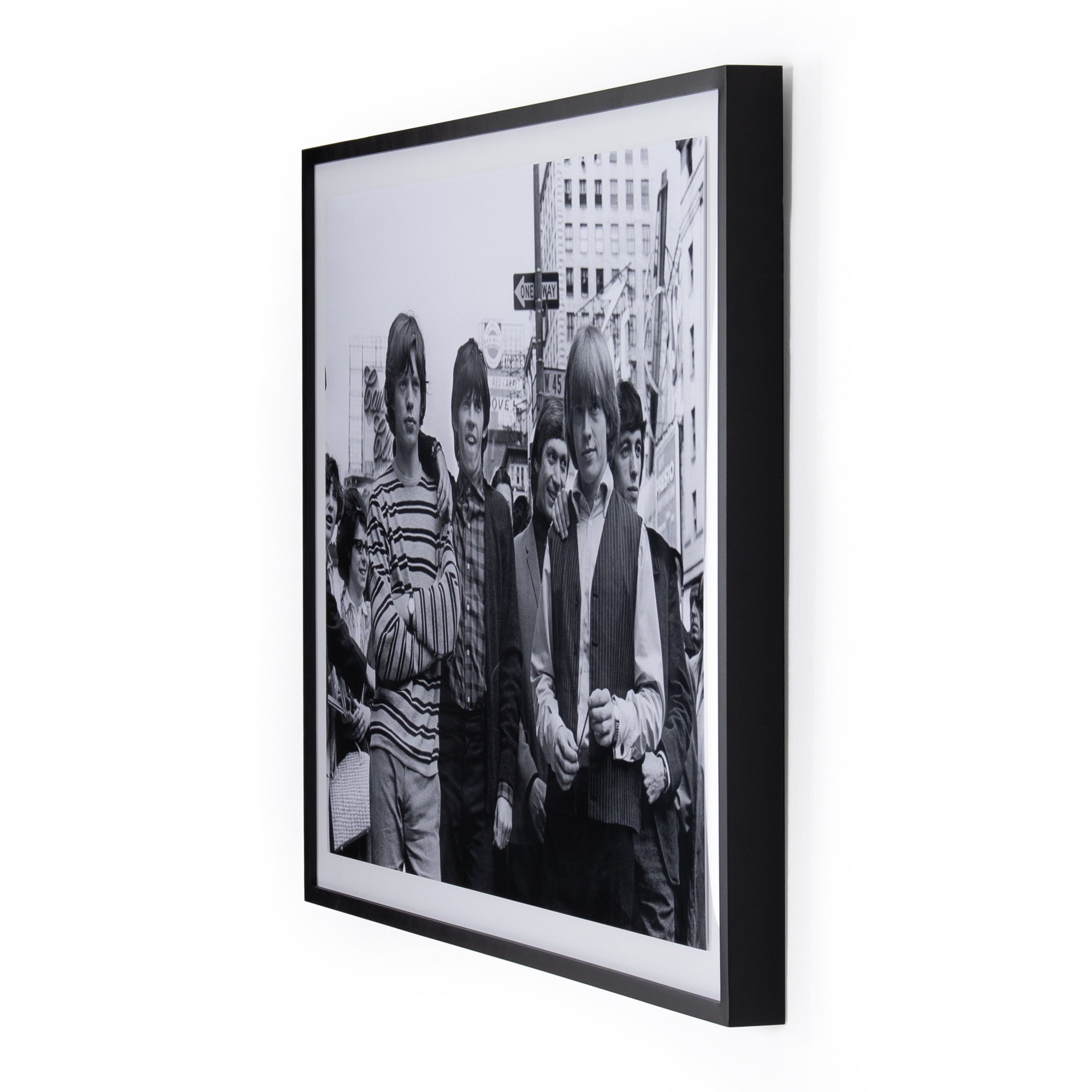 Renowned British rock band the Rolling Stones, photographed in New York City by William Lovelace courtesy of Getty Images. Float-mounted and framed within black-finished American maple for a museum-quality look. Handmade in Austin, Texas, each print includes a certificate of authenticity commemorating the exclusive partnership between Getty Images and Four Hands Art Studio.