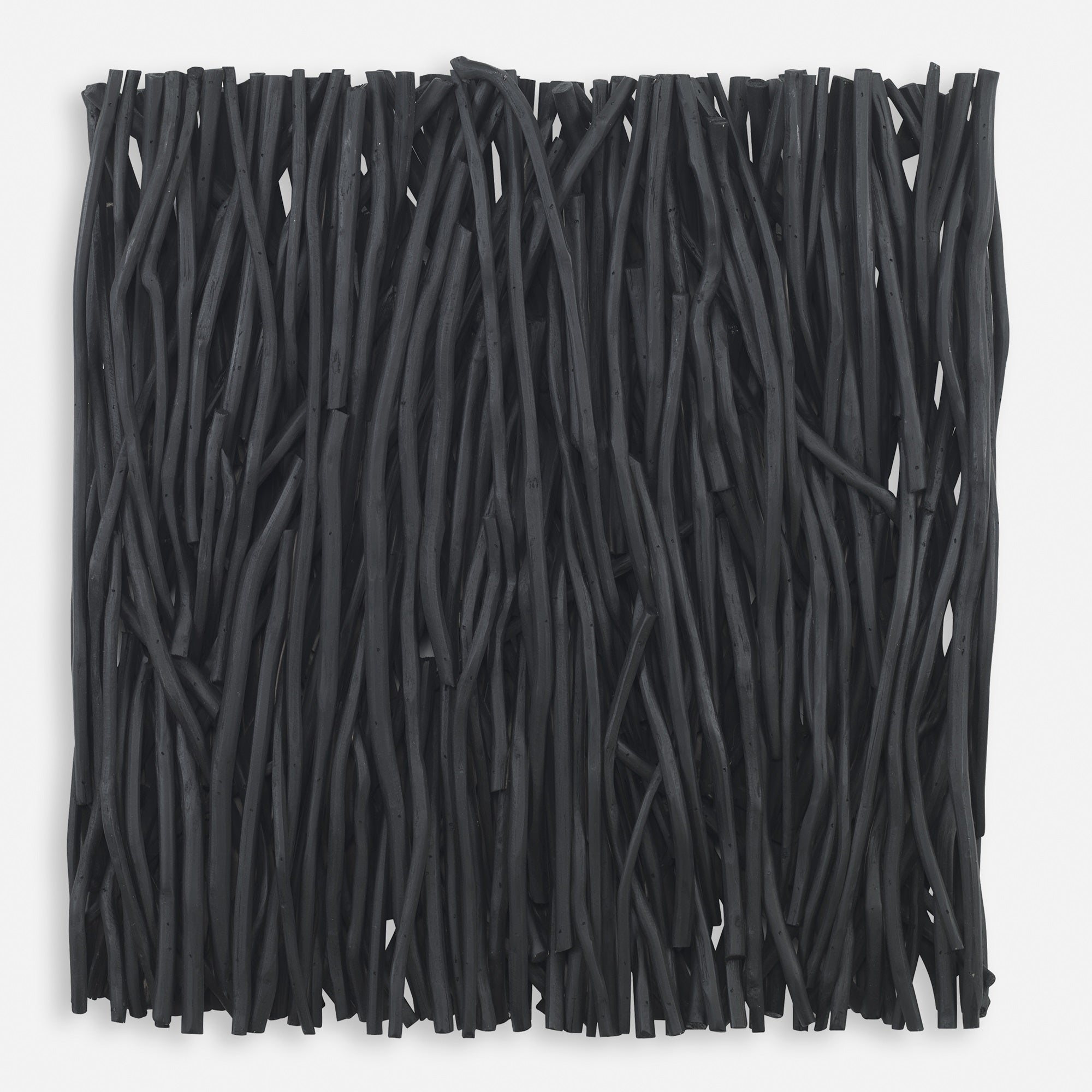 this square wood wall panel is artfully created from teak branches in a contemporary black finish. may be hung horizontal or vertical.