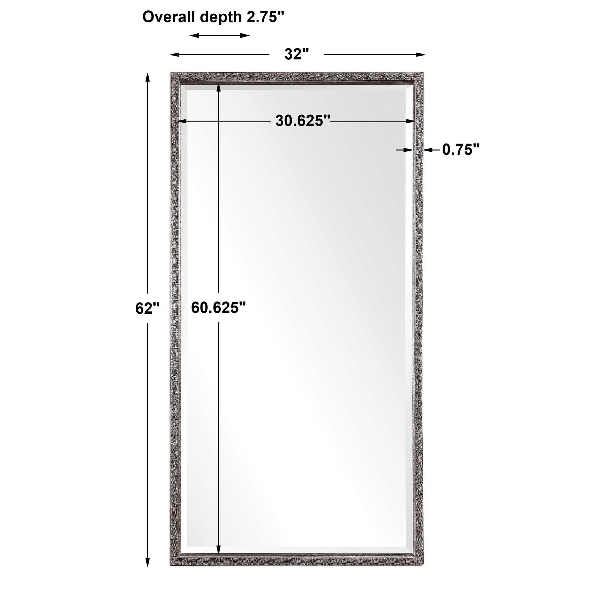 This Contemporary Design Features A Hammered Texture On All Sides Over A Linear Profile, Finished In A Lightly Antiqued Metallic Silver. Mirror Features A Generous 1 1/4" Bevel And May Be Hung Horizontal Or Vertical.