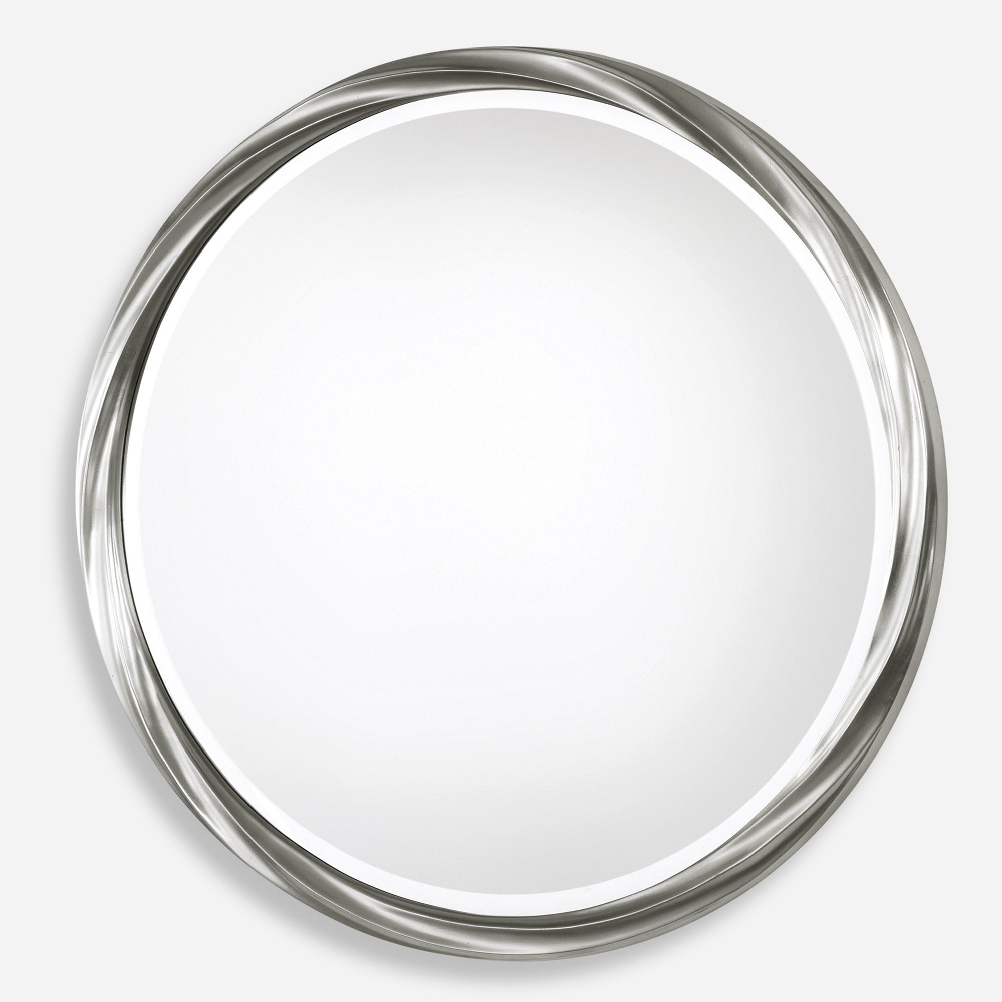 This Contemporary Design Features A Twisted Motif With A Hand Applied Metallic Silver Leaf Finish. Mirror Has A Generous 1 1/4" Bevel.
