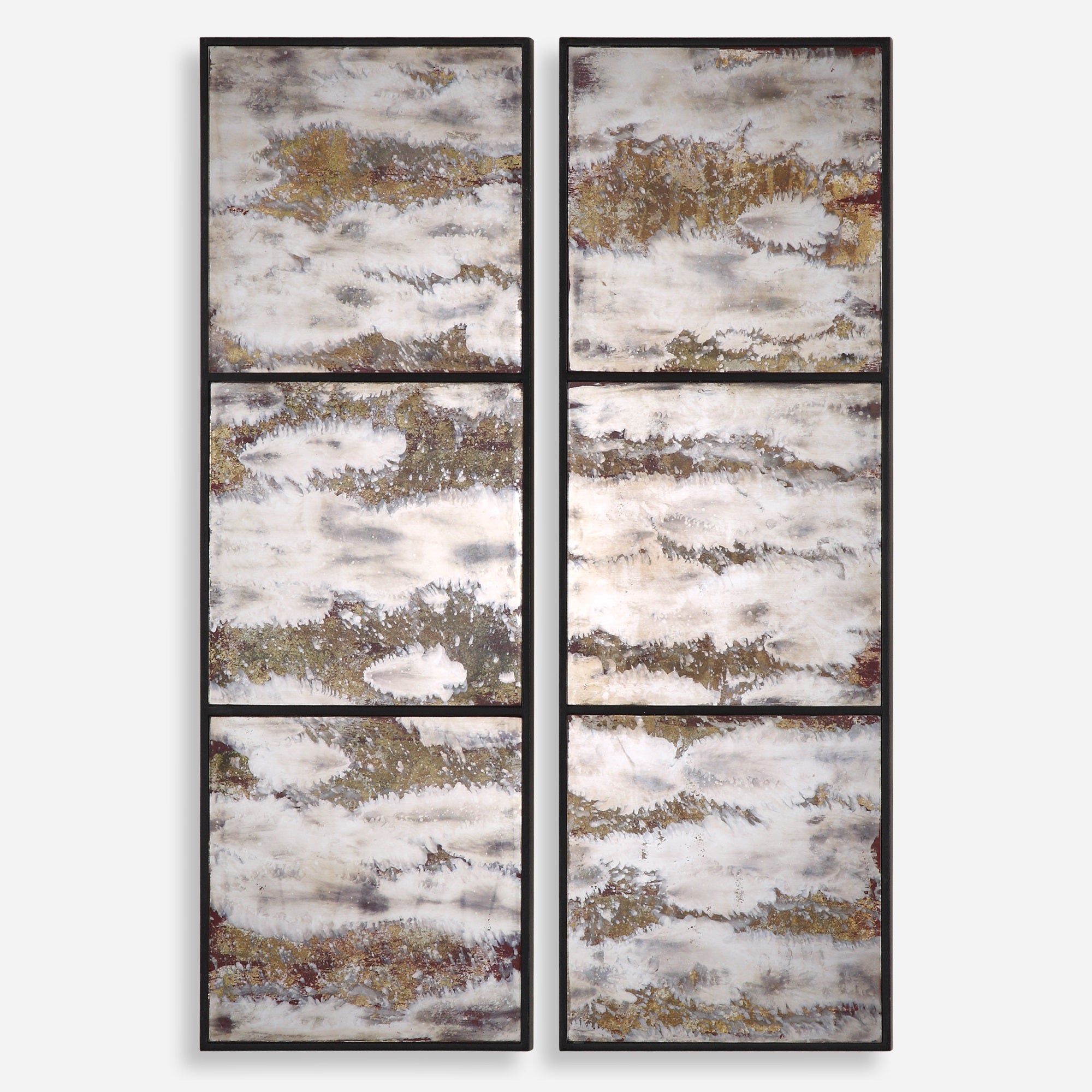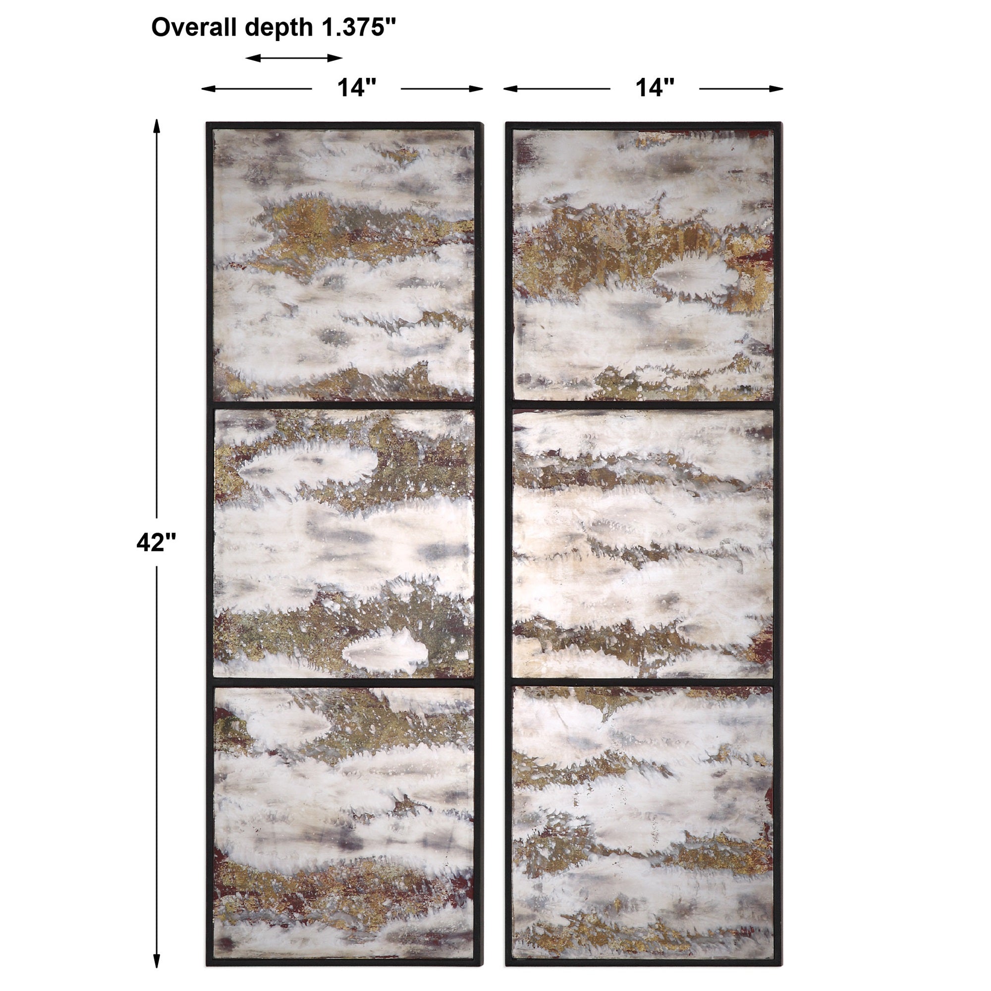 - Each Panel Features Three Mirrors With A Heavily Oxidized Antique Mirror In Deep Earth Tones.