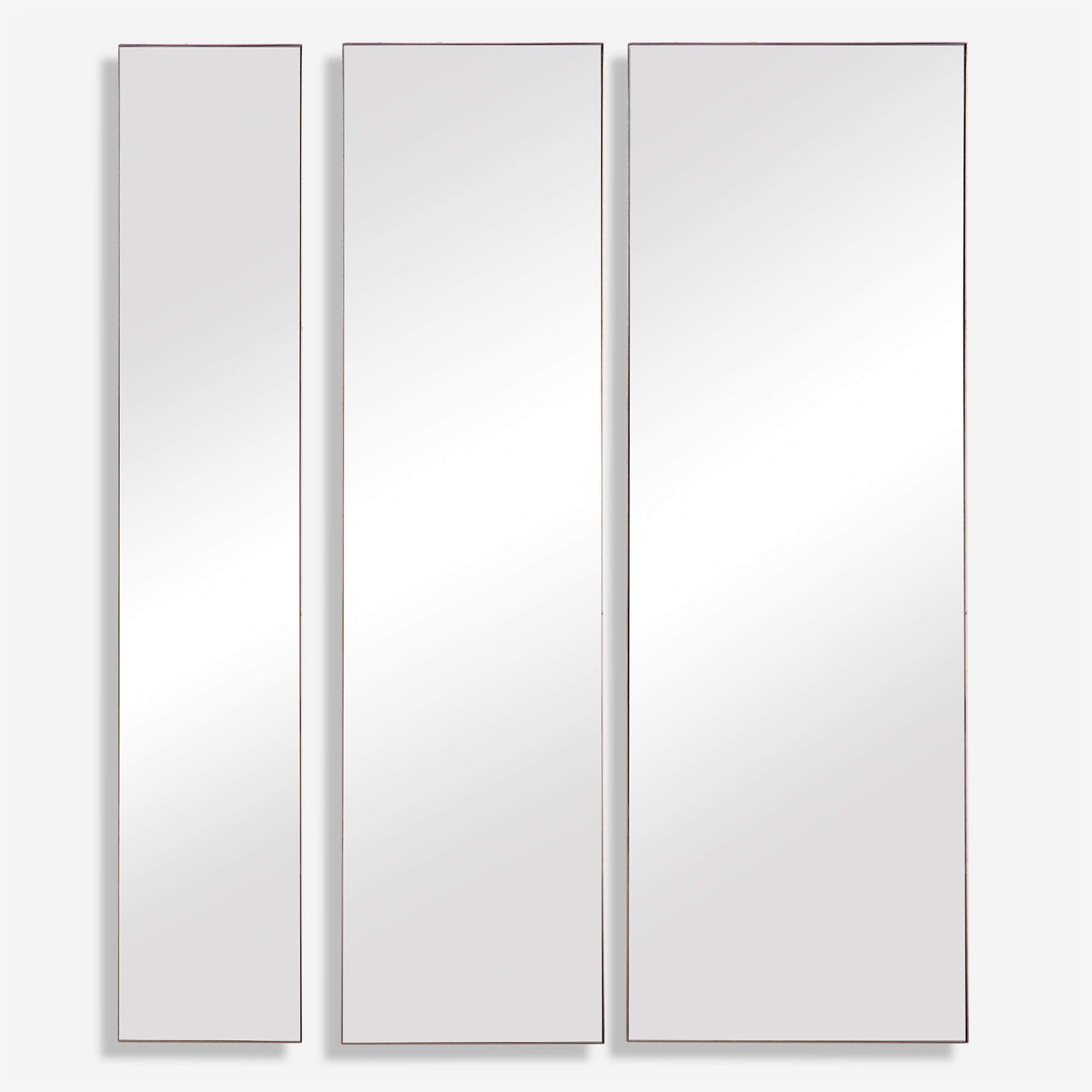 This Set Of Three Mirrors Showcase Simple, Clean Lines With Gold Leaf Finished Metal Profile Frames. Each Mirror May Be Hung Horizontal Or Vertical, Allowing For Multiple Modern Display Options. Sizes: S-8"x47", M-12"x47", L-16"x47"