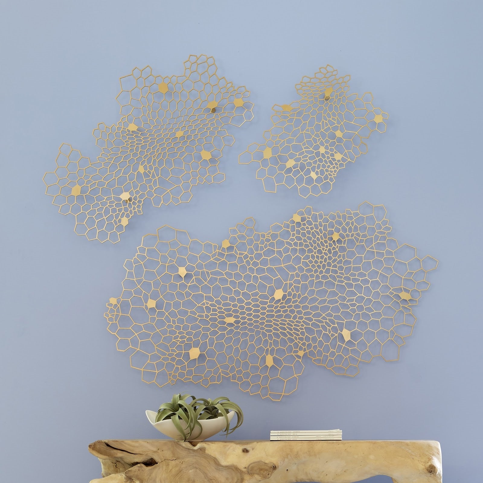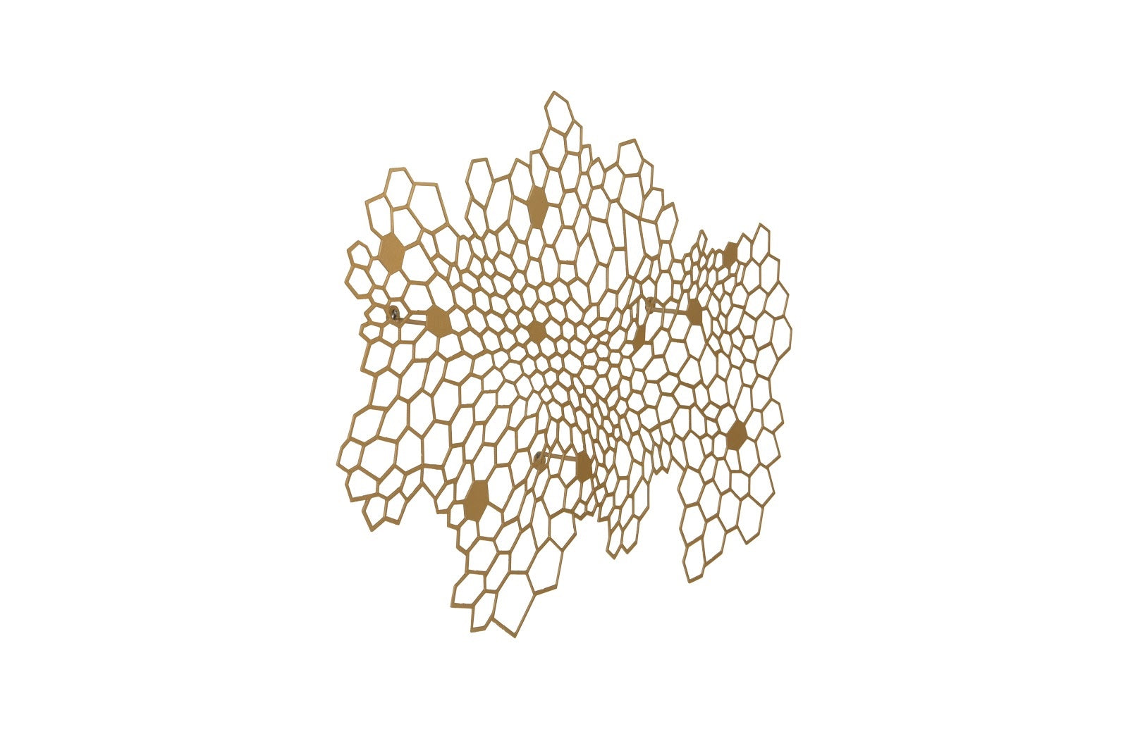 The Honeycomb Medium Wall Art will have those who spy it buzzing. Made from thick-gauge metal that is laser cut and finished in a satin metallic hue, the gold wall sculpture extends from its smartly hidden mounts to make it appear it is rippling. This gives the impression that the decorative accent is always in movement. We also offer the Honeycomb in small and large sizes, which makes these beautiful gold wall sculptures perfect for arranging in a gallery-wall installation. Each of these reflects the ethos that Phillips Collection personifies: modern organic.