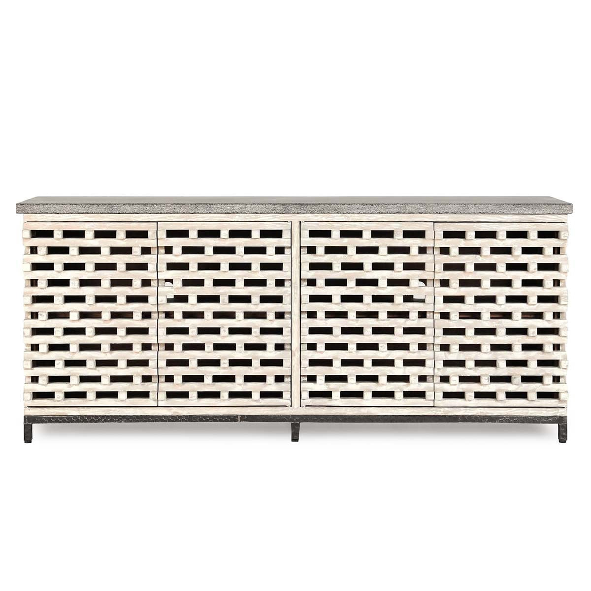 Bring character into your home with our Virginia Cabinet, crafted from reclaimed pine and topped with a blue stone surface. Supported by sturdy iron legs, it combines rustic charm with practical storage. A timeless addition to your living space.