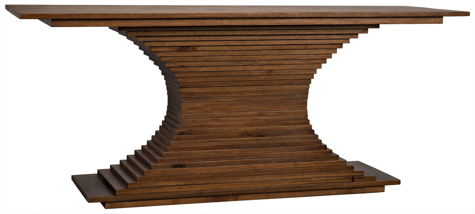 Walnut is expertly hand-carved into decorative ridges, creating curves out of straight lines, and turning extensive adornment into simplicity. A hand-applied dark finish enhances the piece perfectly.
