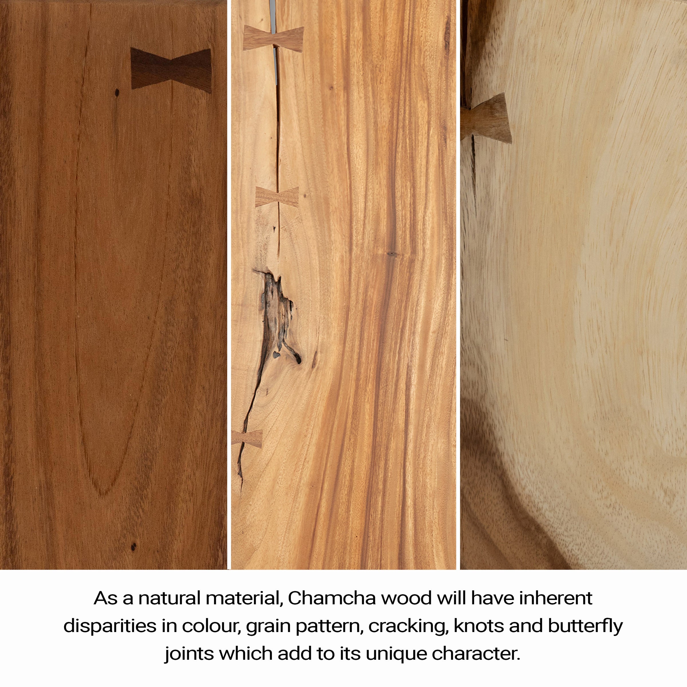 Hand-carved from solid Chamcha wood, the Anchali Accent Stool presents a substantial and unique Z-shaped silhouette that brings organic styling to any living space. Each stool embodies the artisanal mastery evident in the natural beauty of the wood, showcasing distinctive grain patterns, knots, and subtle variations in both shape and finish. Crafted by hand, this stool embraces the inherent authenticity of Chamcha wood, highlighting its organic characteristics such as knots and cracks. As a result, every Anchali Accent Stool stands as a singular piece, seamlessly merging the raw, natural allure of Chamcha wood with its distinct Z-shaped design, offering a touch of individualistic charm to enhance your decor.