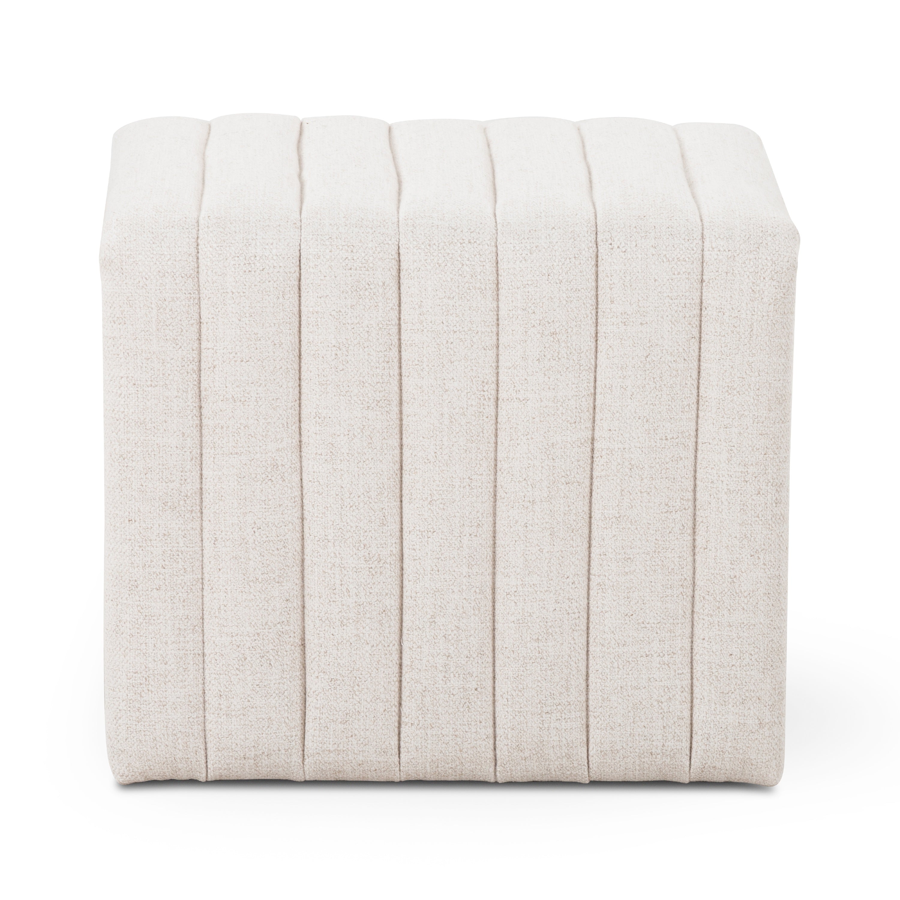 Layer in an extra surface or added seating by way of a linen-blend ottoman in a crisp, clean off-white, with dramatic channeling for great texture.
