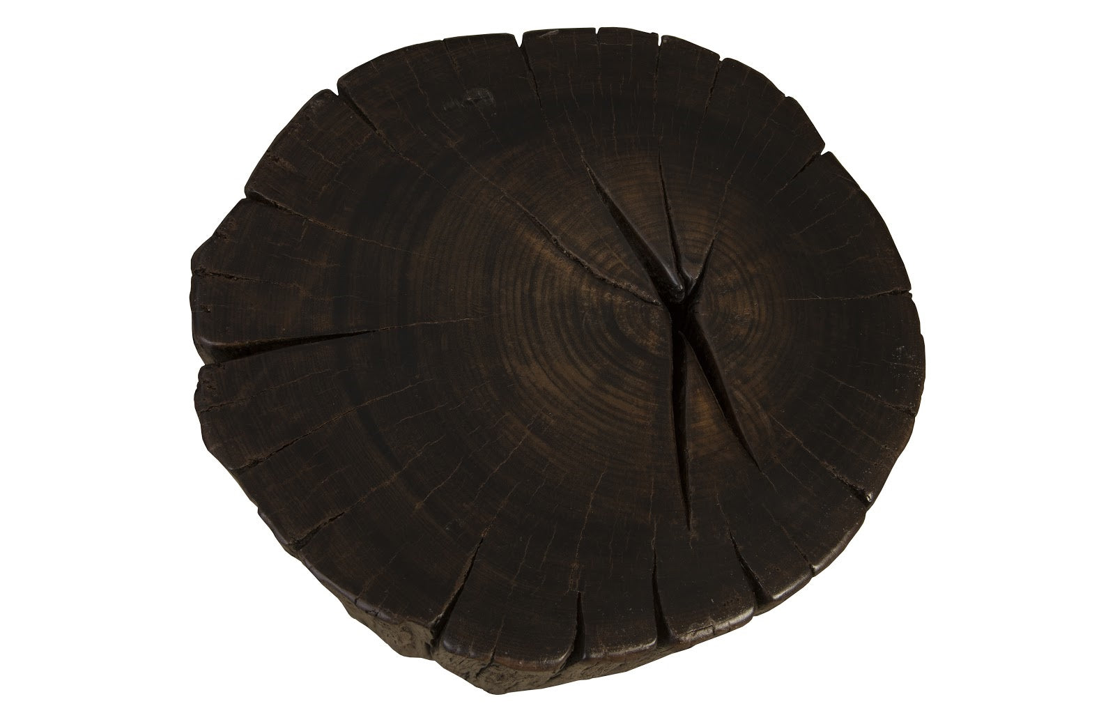 The Black Wood Stool is a beautifully straightforward piece crafted from a cut of wood that has been smoothed out to provide a spacious seating surface. The organic nature of the stool along with the deep brown hue make the Black Wood Stool a perfect accent piece for rustic spaces. Because of the organic nature of wood, each Black Wood Stool is a unique and one-of-a-kind design statement that will have its own sense of character.