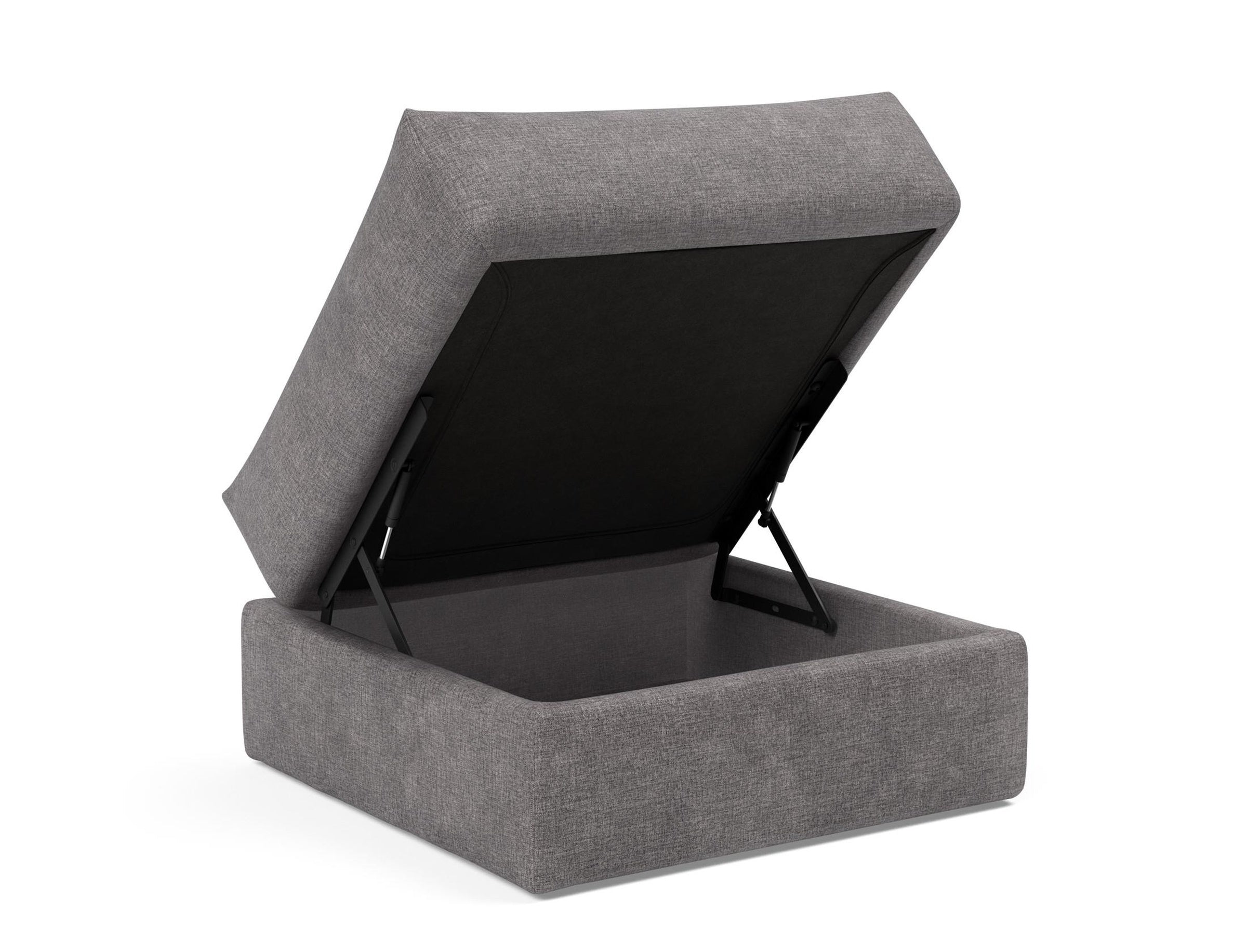 The Cornila ottoman has a soft comfort, featuring a dual pocket spring composition that creates maximum comfort while sitting or lounging. Cornila features an integrated storage space which is easily accessed by lifting the top. An easy reachable and spaciousstorage space to hide away throws, cushions, books or any everyday clutter. Use the Cornila ottoman with our Walis daybed or one of the sofa bed models Osvald, Tripi or Otris and it can double as a chaise lounge. Cornila is a pure upholstery design that conveniently optimize space and when used as a lounger in connection with any of the above-mentioned sofa models, Cornila provide an extended seating or lounging comfort without compromising the overall style and appearance of the sofa. Used on its own it can function as an ottoman or as a freestanding, single seat. Ideal for any home which requires more space or storage.