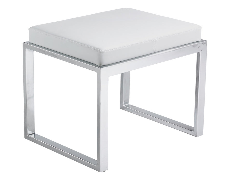 This contemporary stool can be used for extra seating in any space. Great for contract applications in restaurants and lounges. Stocked in black, white or grey faux leather with a chrome finished steel base. Handle With Care: This design has been crafted with faux leather. Faux leather is manufactured to reflect the natural characteristics of leather; as such, colour variations, markings, wrinkles, grooves, and light scratches are appreciated characteristics. No two pieces will be alike. Visit our Product Care page for more information on how to ensure the lasting beauty of this piece.