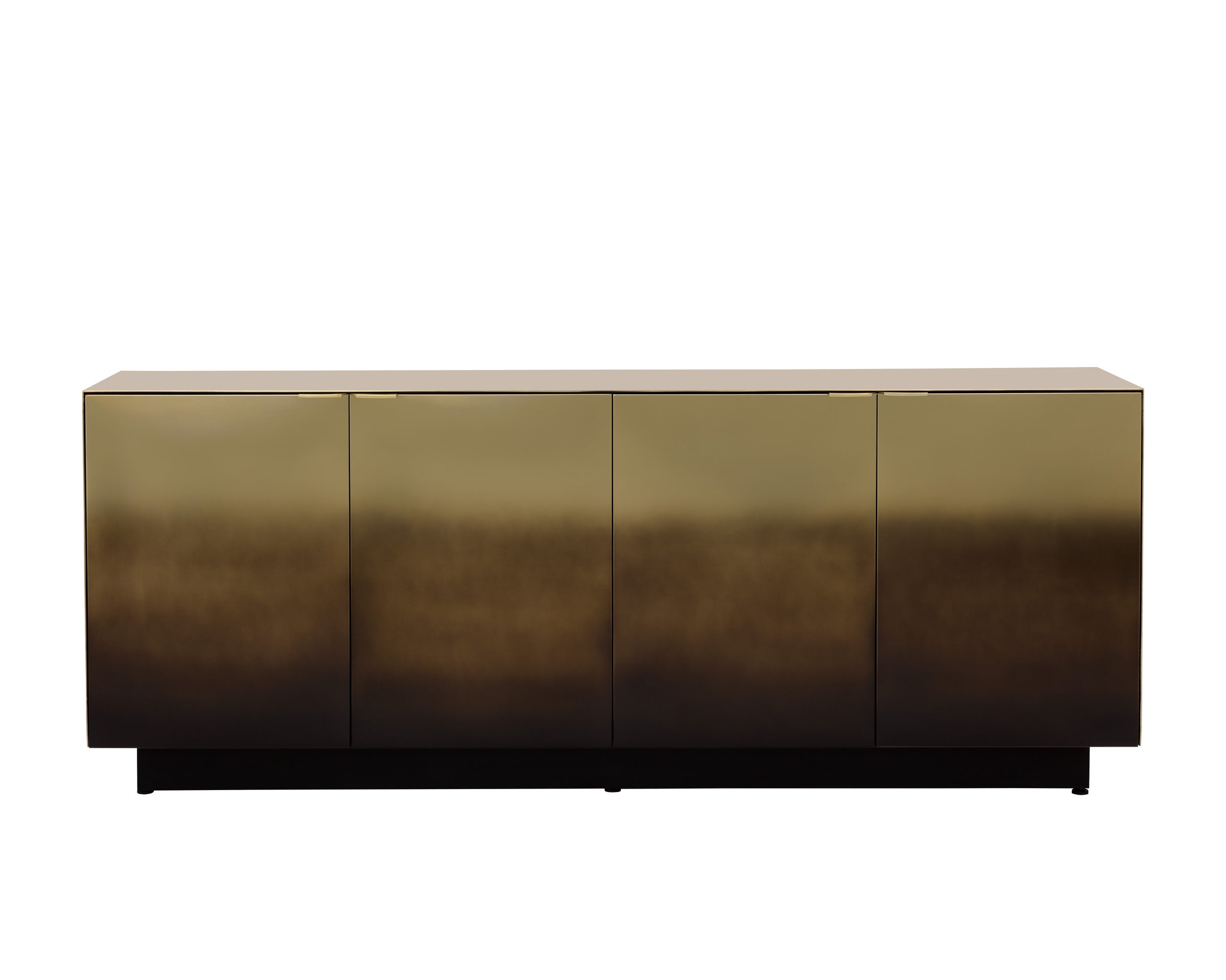 With an alluring ombre design, the Calvosa Sideboard will captivate in any space. Crafted from stainless steel with a dark bronze finish. Made in India. With refined craftsmanship, this design was brought to life by skilled local artisans. By nature, these materials develop unique imperfections such as fissures, markings and colour variations for a truly one-of-a-kind piece.