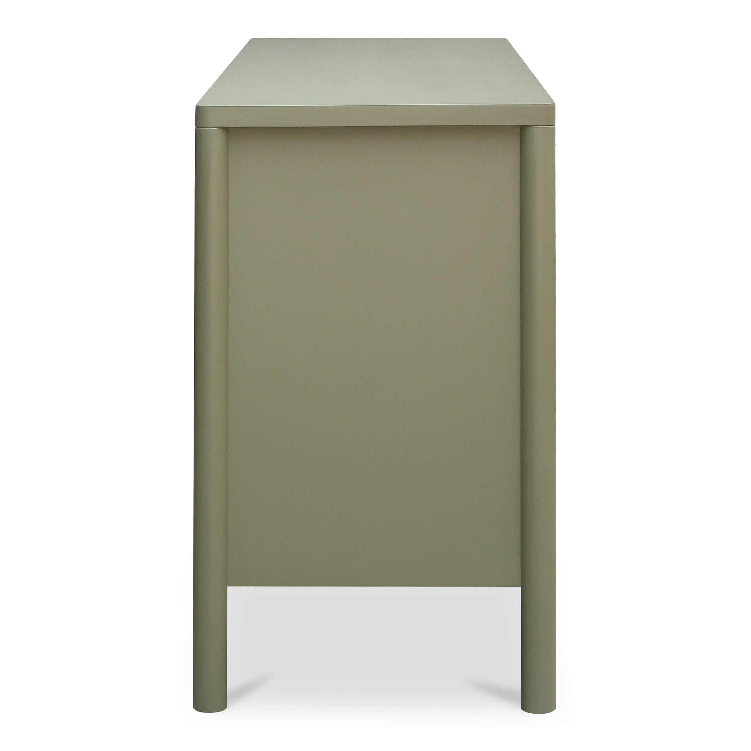 - Door front panels are a balance between transparent and concealed storage. Dowel legs and simple bronze hardware add softness