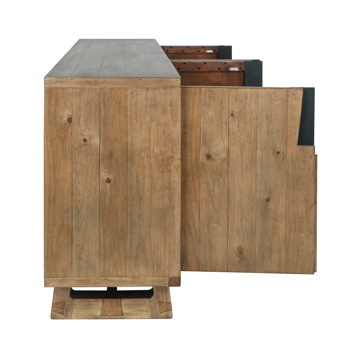 The Lyra Buffet is crafted from FSC® Certified reclaimed pine, offering both sustainability and natural beauty. The rich, earthy tones of the wood, combined with its weathered finish, give this buffet a timeless, rustic appeal. With ample storage space, it provides a functional yet stylish solution for organizing your dining or living area. The Lyra Buffet adds warmth and character to any room, combining eco-conscious craftsmanship with distinctive design.