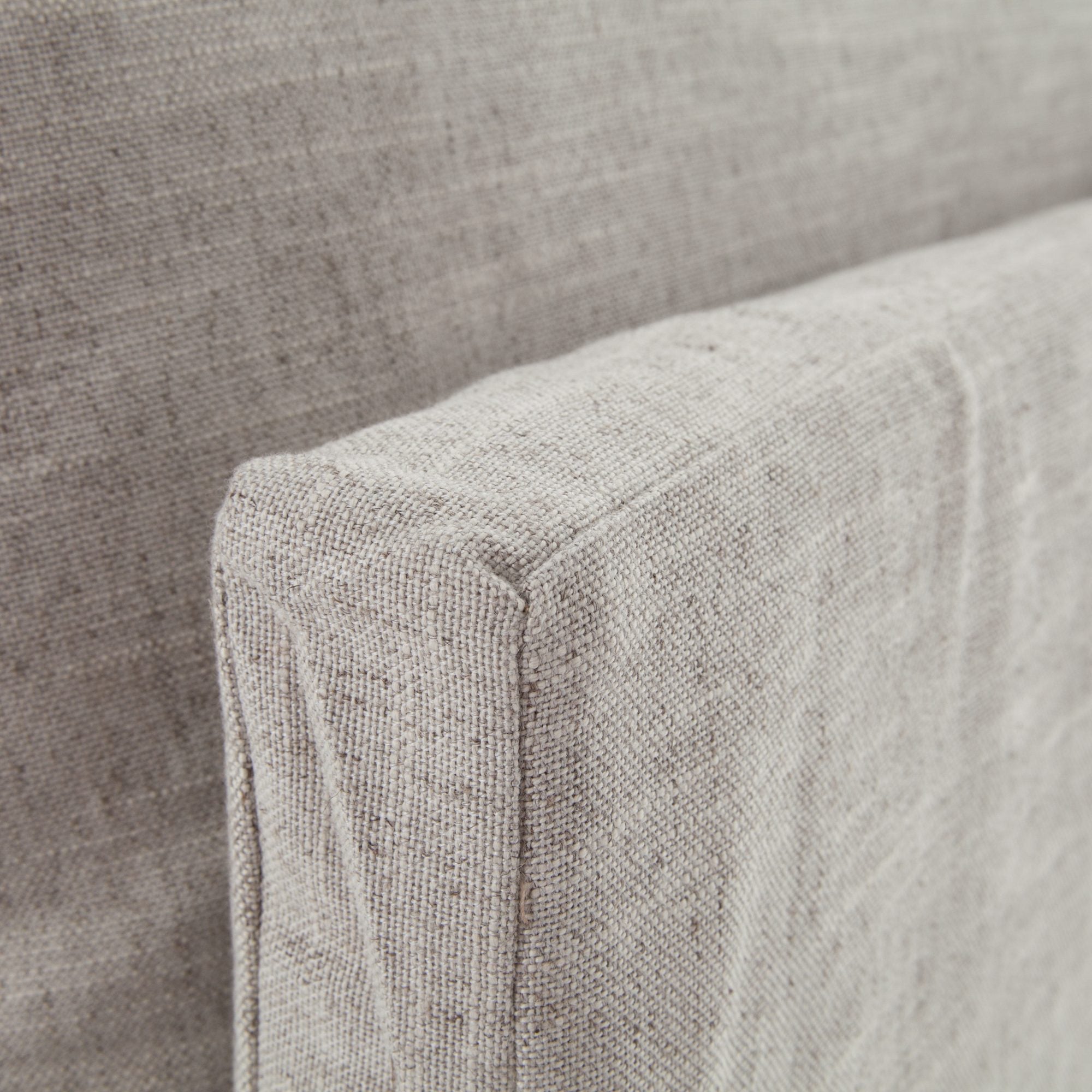 A slipcovered sofa made for modern living. Shelter arms and big, pillow-inspired cushions are covered in a durable, extraordinarily comfortable fabric prime for lounging.