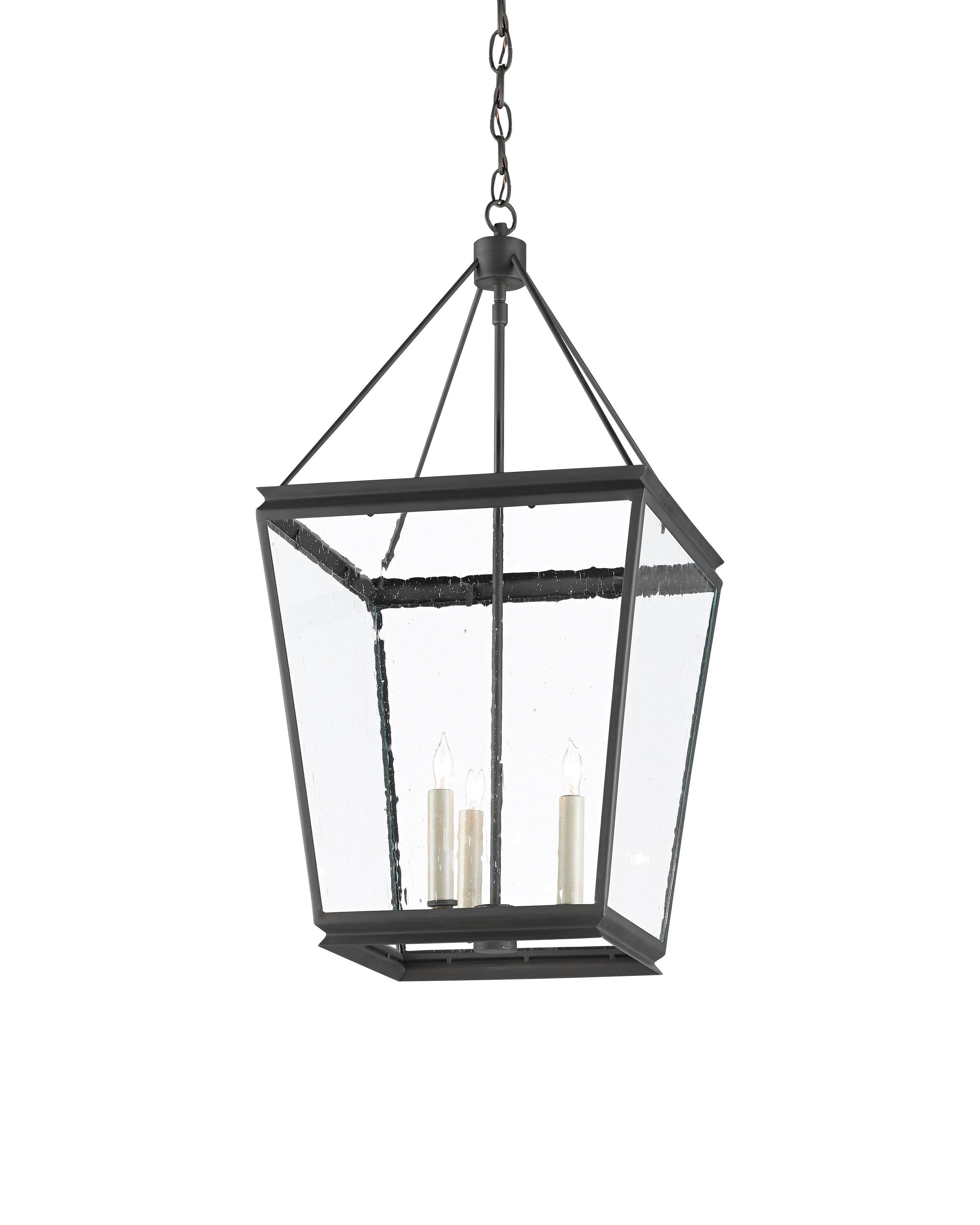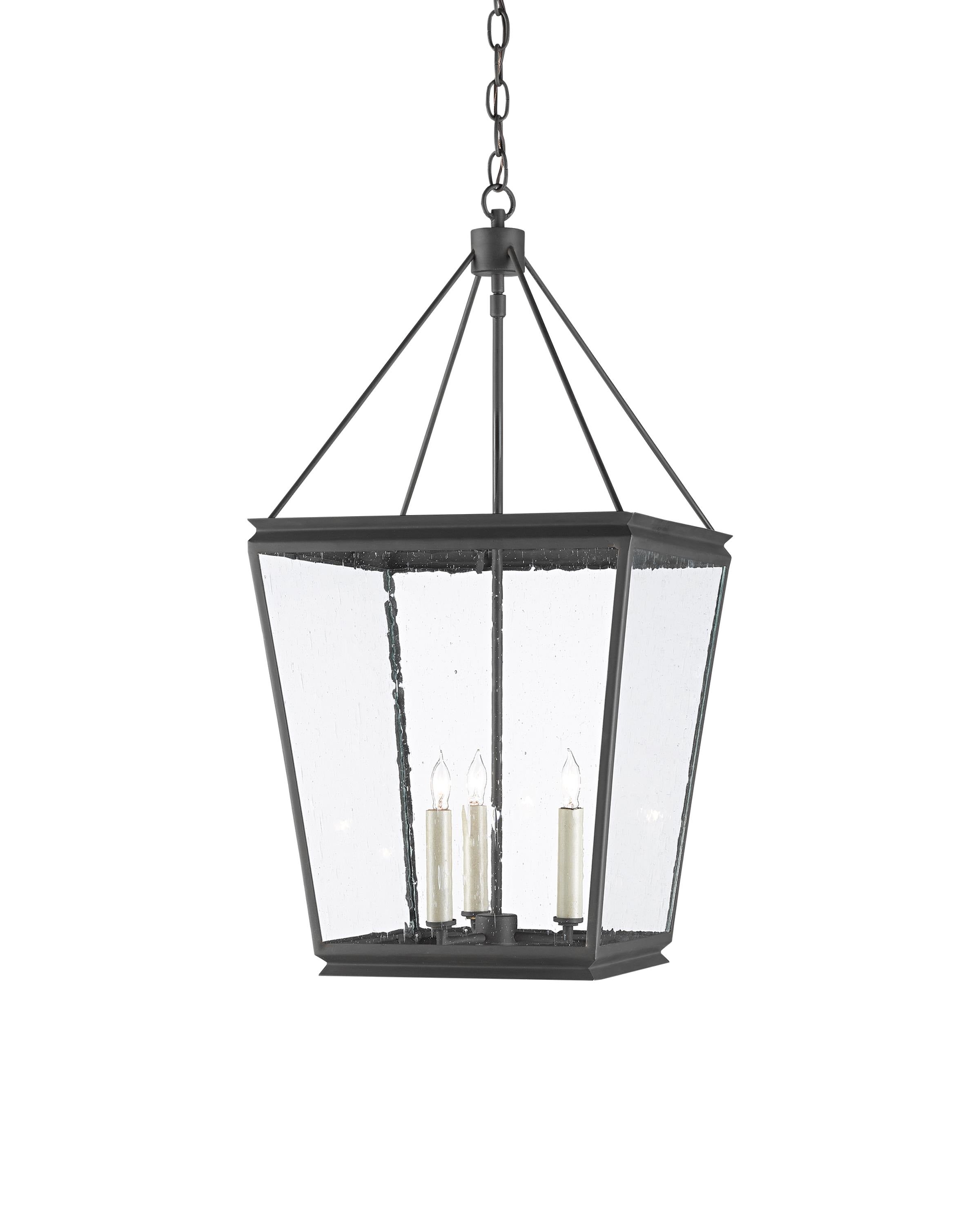 The Ellerman Lantern is a tried-and-true design that reflects the age-old lantern shape, which never goes out of style. Made of wrought iron in an old iron finish, the black lantern is fitted with seeded glass panels to complete the feel that this is a fixture rooted in Americana.