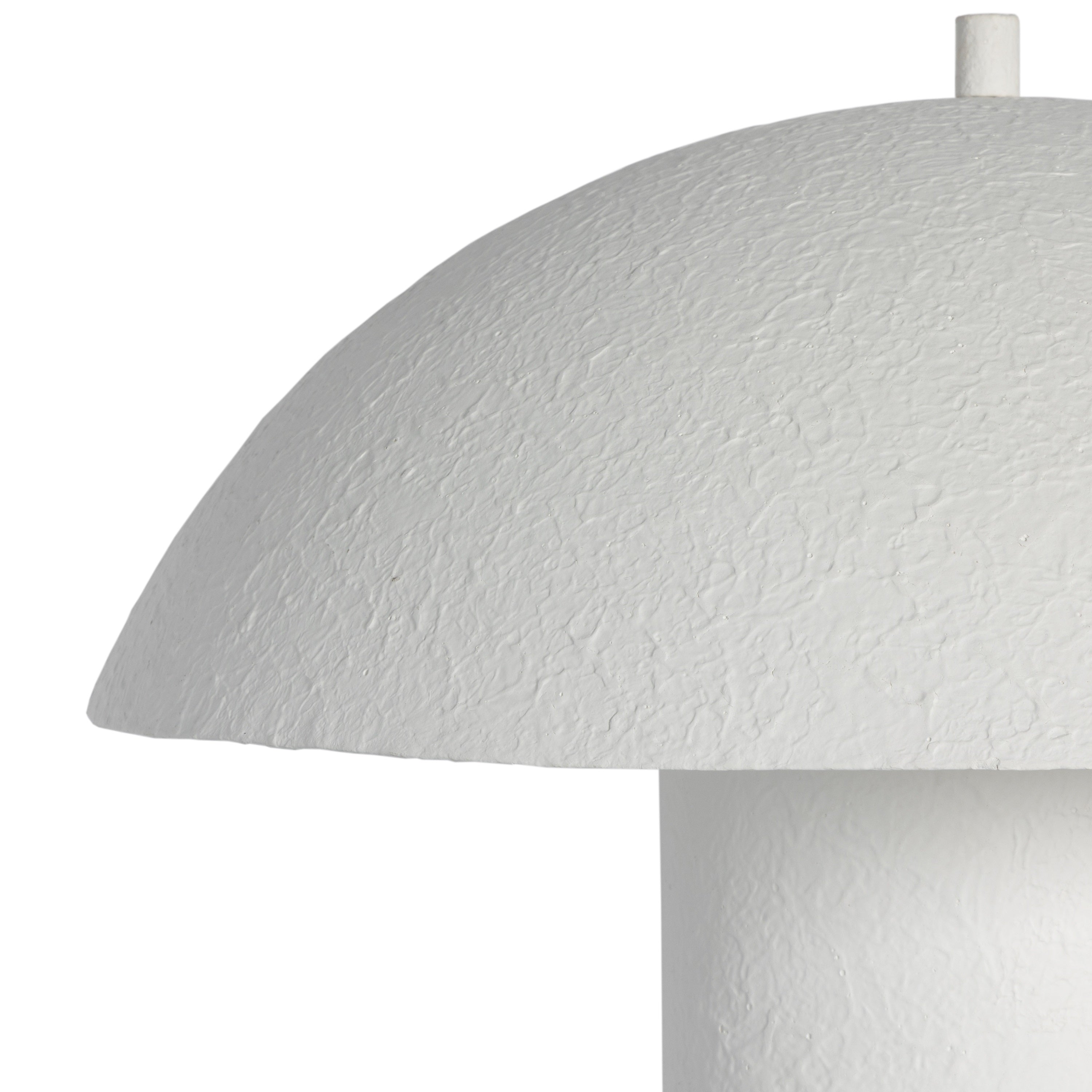 Simple and modern, this texture-inspired table lamp has a plaster-like finish and modern mushroom-shaped dome for an allover hand-molded look.