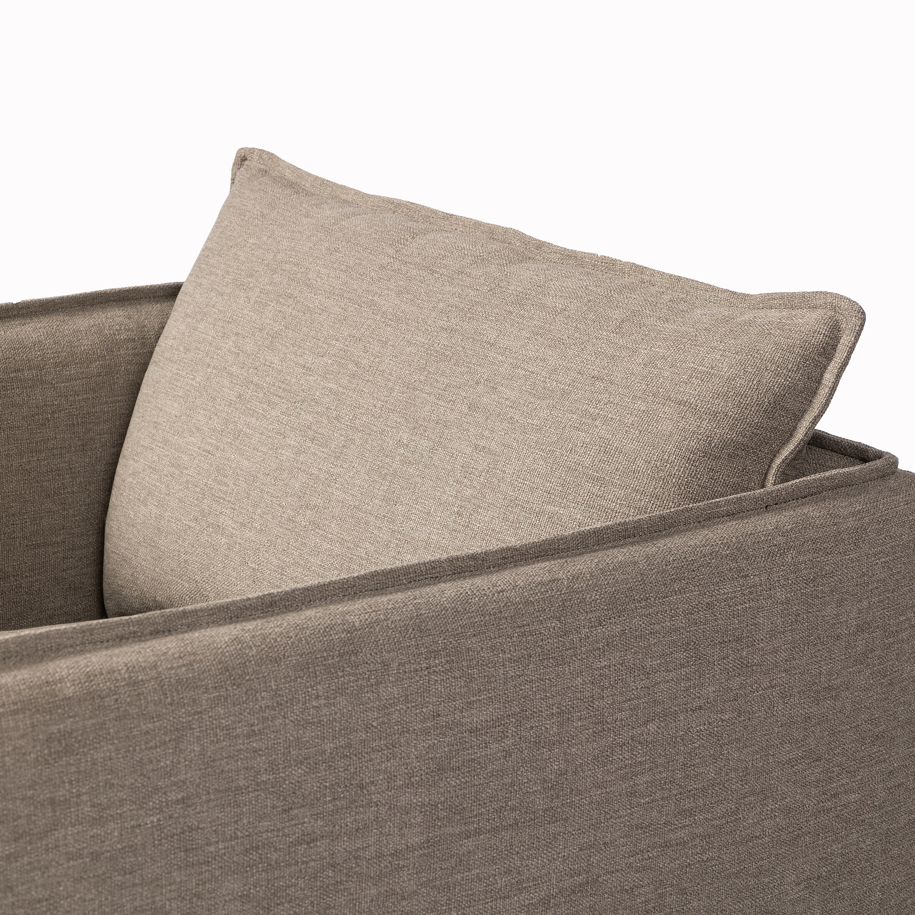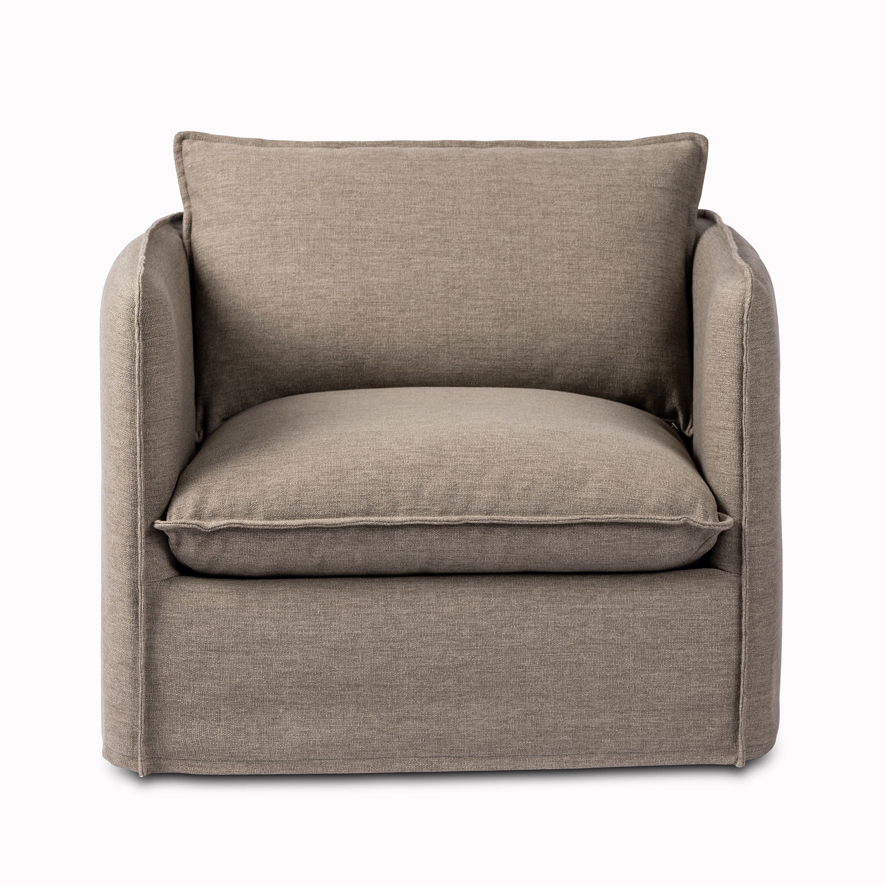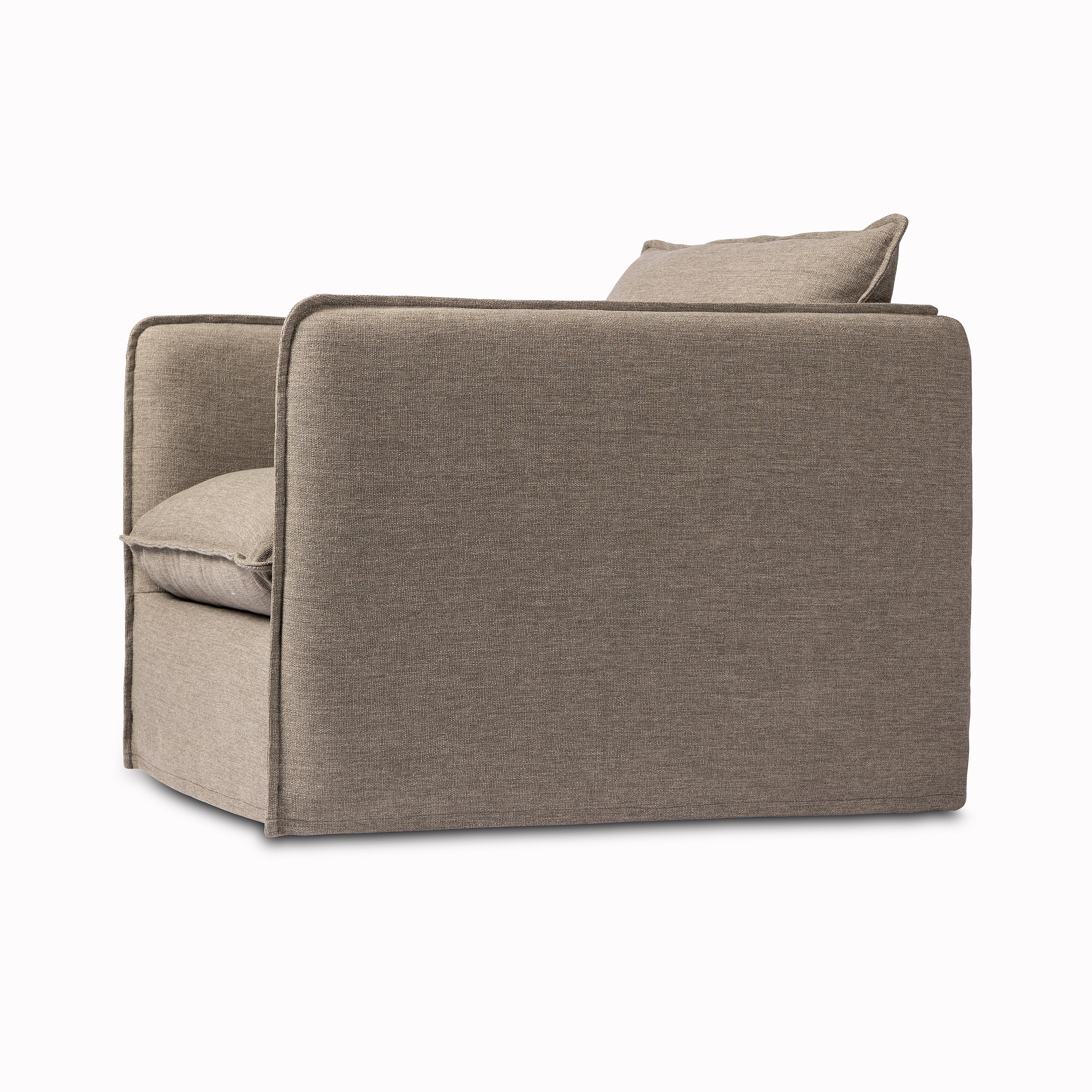 An outdoor interpretation of an indoor silhouette. This 360-degree outdoor swivel chair offers a clean, contemporary feel with relaxed casual comfort. The seat and loose back cushions feature removable, washable slipcovers with a simple flange detail. Sustainably made with zero waste, luxurious Italian upholstery places a new and unique spin on indoor/outdoor seating, offering soft, durable fabric that's highly resistant to sun, stains, mold and abrasion. Cover or store indoors during inclement weather and when not in use.