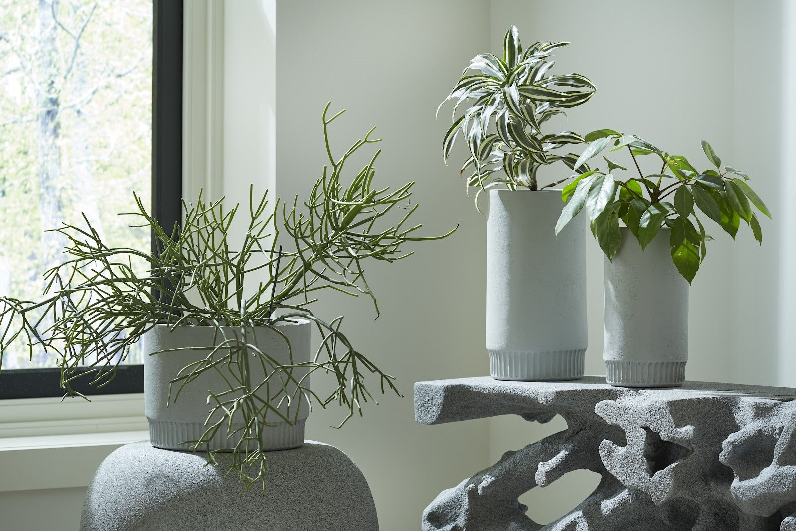 Not every garden requires antiquities to make it shine. For lovers of contemporary design we have an array of offerings in planters that make them perfect vessels for plants and flower without all the embellishment. Case in point is the Harvest Medium Light Gray Planter with its clean lines and clever indented dentil pattern on the implied base. It’s made of composite so it’s easier to move around that terracotta planters. We went the extra mile style-wise with this design, as we rolled the lip of the planter inward to pare down the shape. We also offer the light gray Harvest in small and medium sizes, and a darker gray in all three sizes is available. Each of these reflects the ethos that Phillips Collection personifies: modern organic.