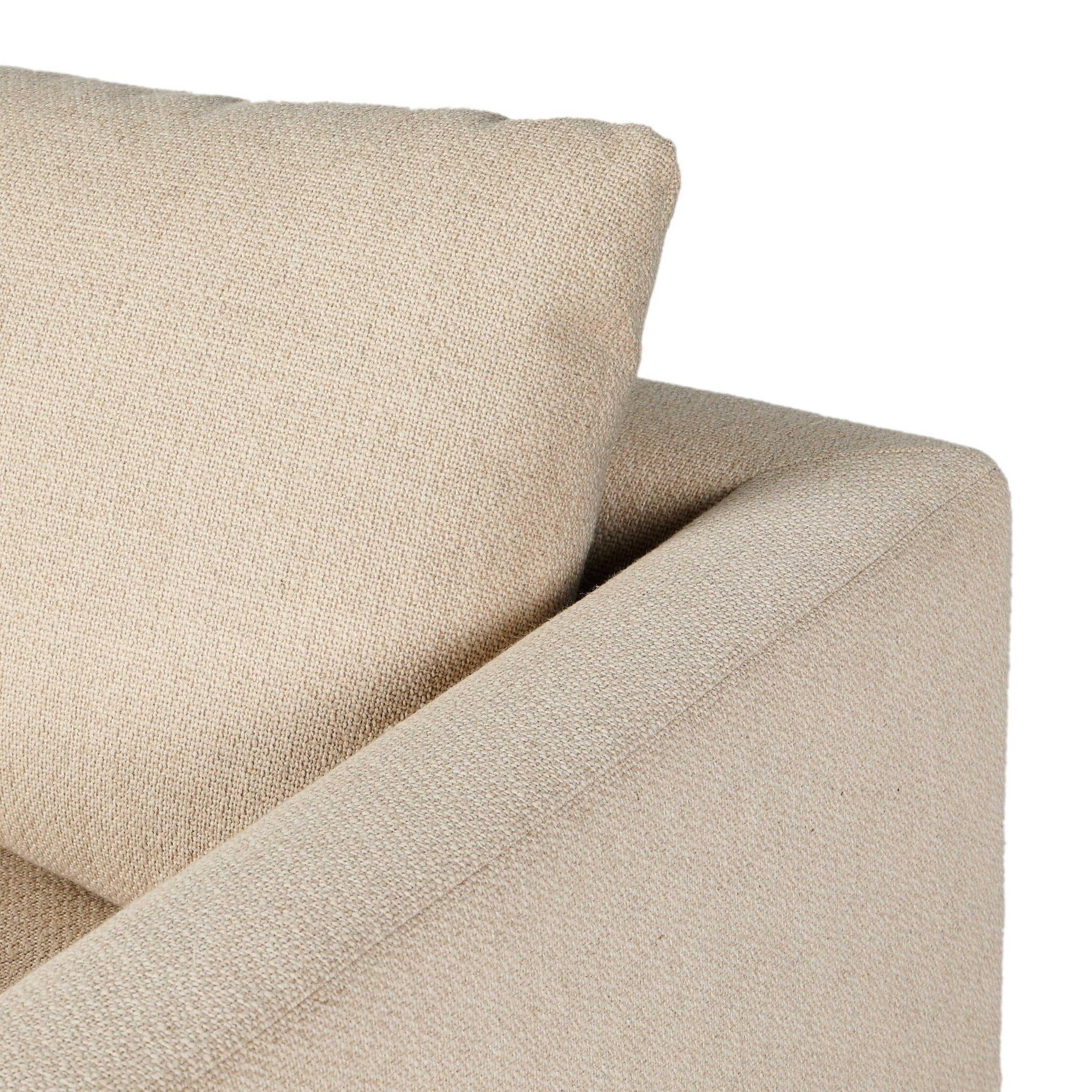 Clean lines meet comfort in this modern-minded sectional. Wrapped in high-performance fabric, an oversized design makes a bold statement while maintaining a tailored look. A rounded chaise adds intriguing shape, while webbed suspension and foam, fiber and feather invite relaxation.